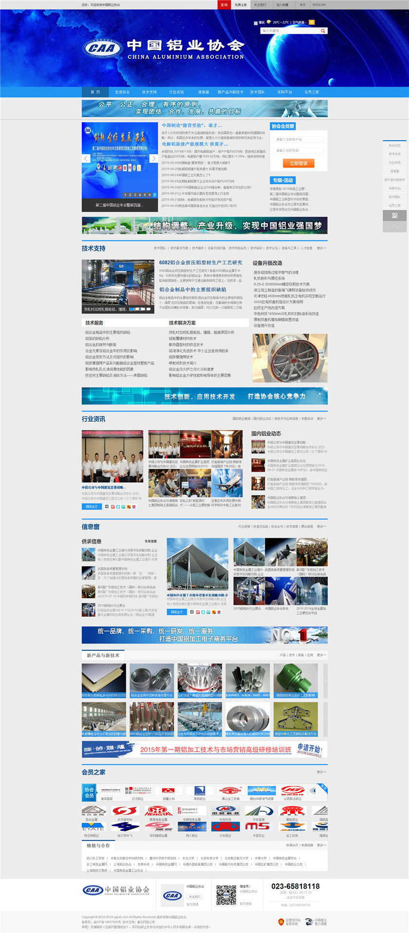 Project Description 中国铝业协会是由中国国内主要从事铝合金铸造、板、带、箔、管、棒、型材、锻件等企业组成的行业协会组织,协会由国内具有一定规模和影响力的企业发起,已有三百多家会员企业,目前还有很多企业踊跃希望加入,协会现有会员企业年销售额1000多亿元人民币,协会会员企业分布在国内华东、华南、西南、环渤海、东北、胶东半岛等中国经济活跃地区;产品涵盖航空航天、兵器装... Official website address 武隆http://www.caa2014.com I want to share